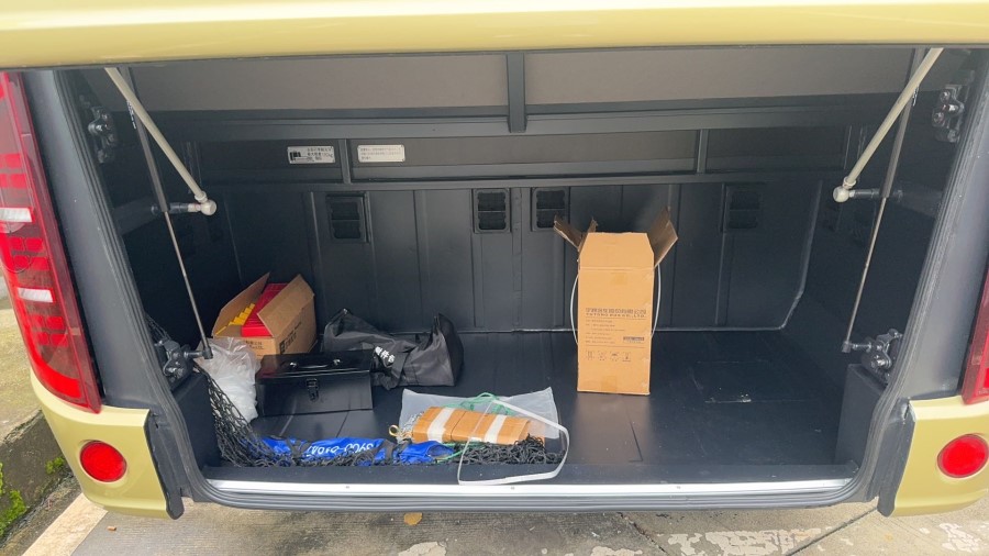 后备箱(1.7个立方)可放置12-14个22-24寸行李箱