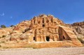 佩特拉古城:佩特拉古城又称玫瑰古城,特殊的地貌使这里呈现出绝美的颜色,是约旦最负盛名的古迹区。2007 年 7月 8 日被评选为世界新七大奇迹,也是世界文化遗产之一。入口是一条长约 1.5 公里的狭窄峡谷通道。建筑物雕凿在悬崖峭壁面内,其房间也隐没在岩石之中。峡谷尽头豁然开朗,耸立着一座高约 40 米、宽约 30 米的依山雕凿的哈兹纳赫殿堂(意为金库),造型雄伟。穿过哈兹纳赫殿堂前面的小谷,有古罗马剧场遗迹。剧场后面有一片开阔地,城市依四周山坡建筑而成,有寺院、宫殿、浴室和住宅等。还有从岩石中开凿出来的水渠。在东北部的山岩上开凿有石窟,其中有一座气势雄伟的三层巨窟,正面为罗马宫殿建筑风格,是历代国王的陵墓。